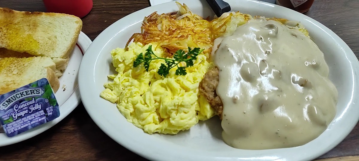 Chicken Fried Steak and Eggs Hashbrowns
